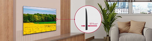 インテリアに溶け込みモダンな印象の客室を演出します。65型で薄さはわずか57.1mm。 |
